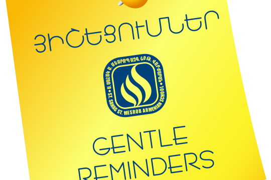 Սիրով հրաւիրուած են բոլոր ծնողները ընդհանուր ժողովի դպրոցի տնօրինութեան հետ, Շաբաթ 26 Հոկտեմբեր, 12։30—1։30. Ձեր կարծիքն...
