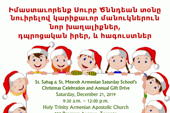 Ս. Սահակ և Ս. Մեսրոպ Ազգային Շաբաթօրեայ Վարժարանի ծնողաց յանձնախումբը կը հրաւիրէ Ձեզ աշնանային նախաճաշի, նպատակ ունենալո...